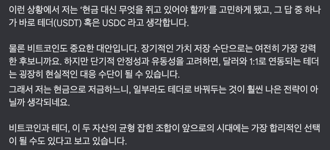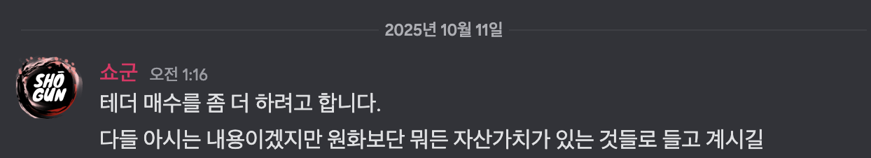 그리고 개인적으로는 테더(USDT) 매수 전략을 꾸준히 이어왔습니다.