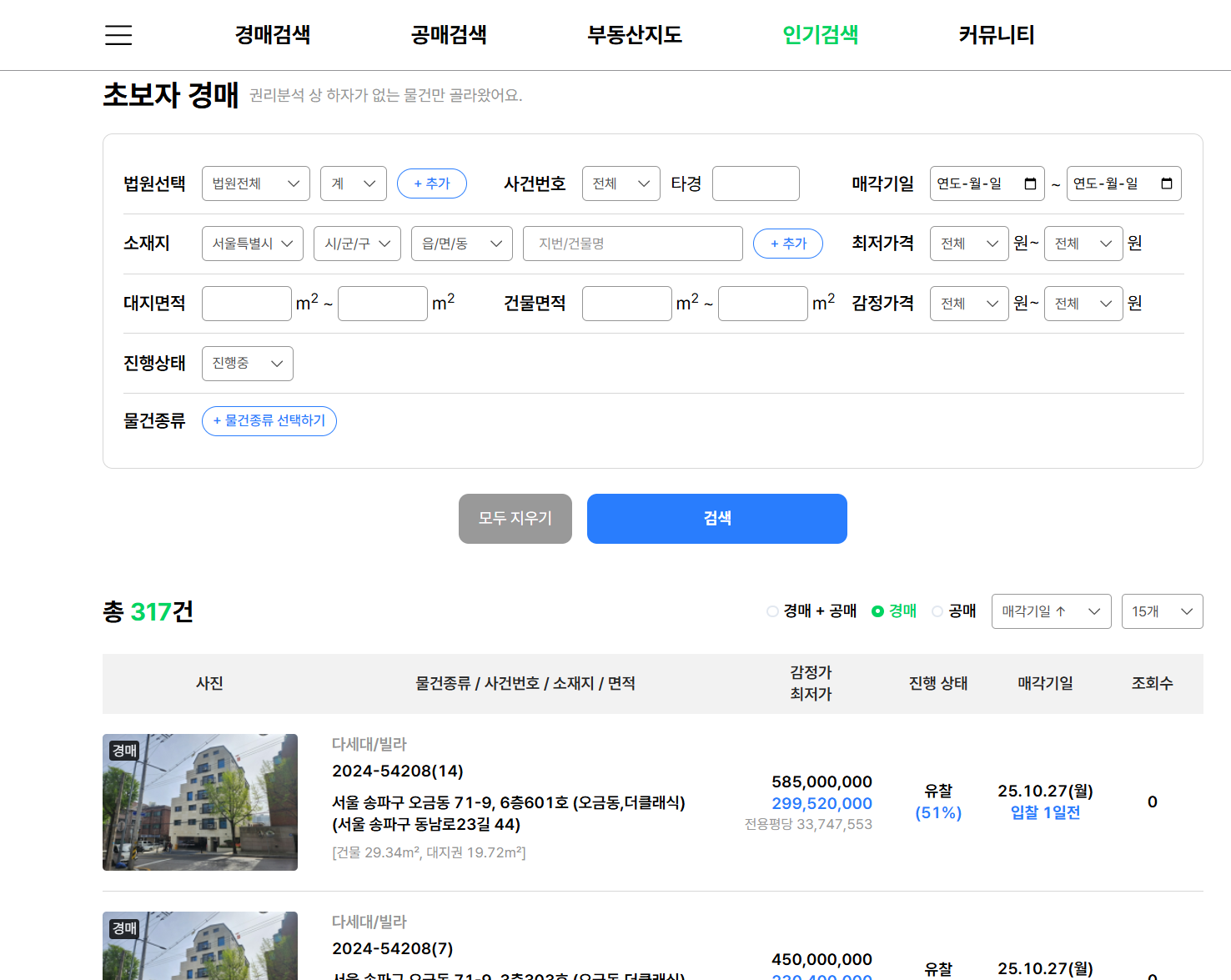 50만 커뮤니티의 투자 경험! 법원경매, 공매, 낙찰가, 시세, 지도, 후기까지 ㅡ 부동산 투자를 위한 모든 데이터가 한 곳에. 실전 투자자가 직접 만든 부동산 투자 데이터 분석 플랫폼