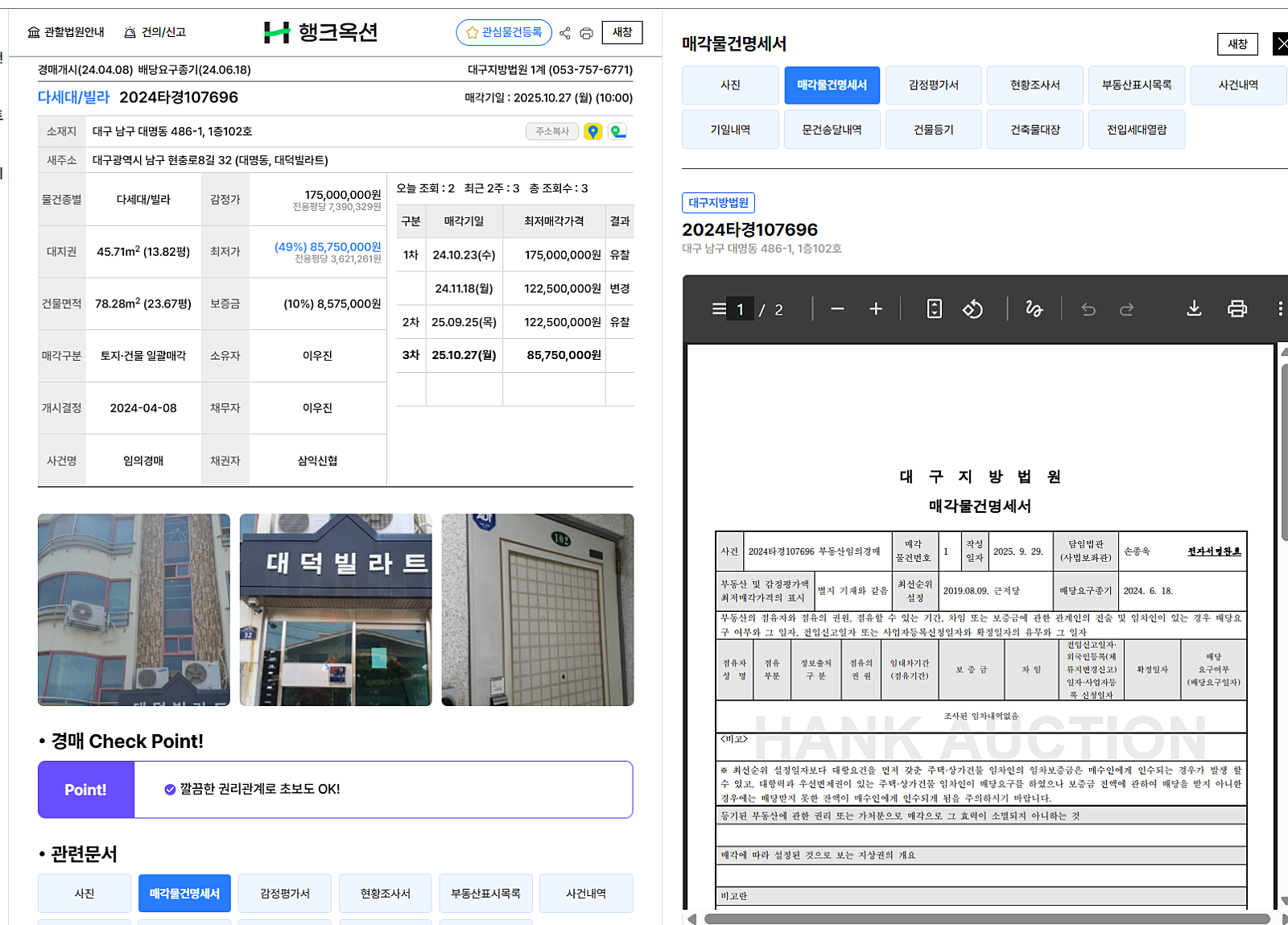 진짜 이 정도면 행크옥션은 올인원 부동산 경매사이트가 맞는 것 같습니다.