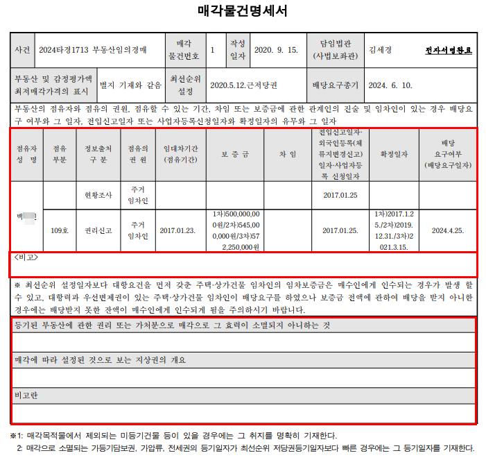 하지만 기재되어 있는데 못보고 낙찰을 받았다면 무를 수 없기 때문에 무조건 확인해봐야 합니다!!