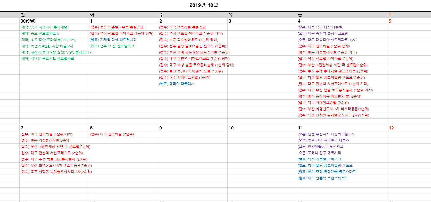 ( 일정, 입공, 1순위, 특공, 무순위 등등 )