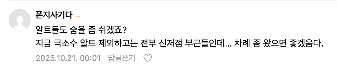 저 역시 11월과 12월을 엑시트 시점으로 염두에 두고 있으며, 지금의 움직임은 그 피날레를 향한 초입 구간이라 판단하고 있습니다.