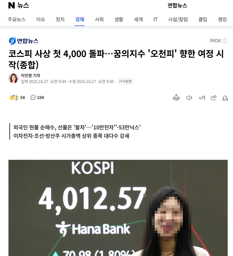 4. 코스피 지수도 사상 첫 4,000 돌파