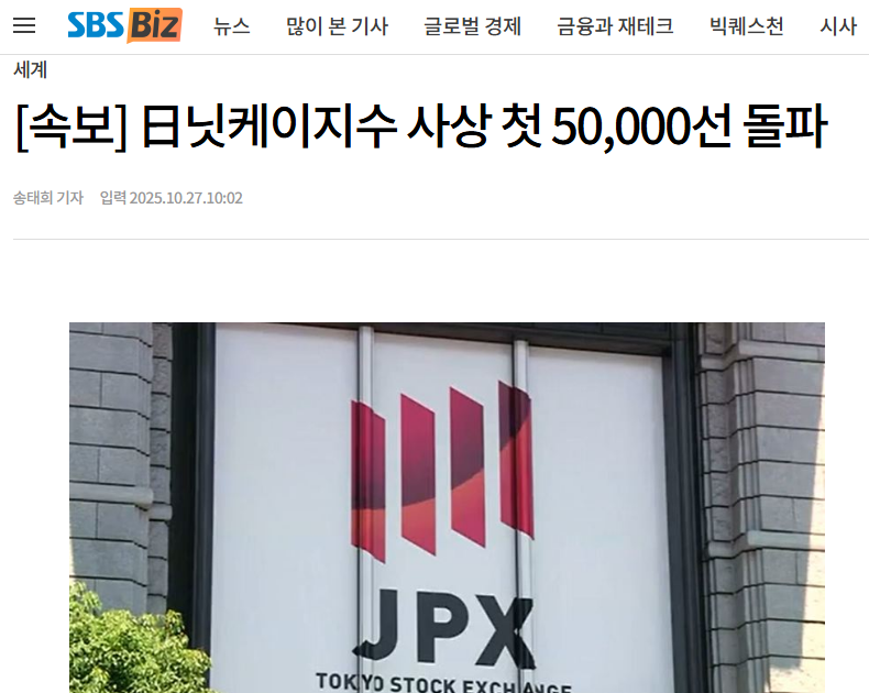 5. 일본 닛케이 지수도 사상 첫 50,000 돌파.
