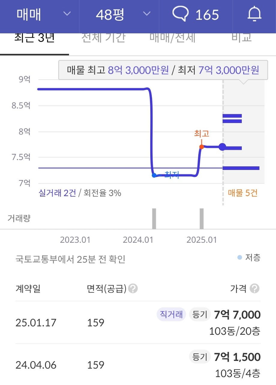 같은라인 13층이 7.97억에 거래 됐어됐어됐어~~~