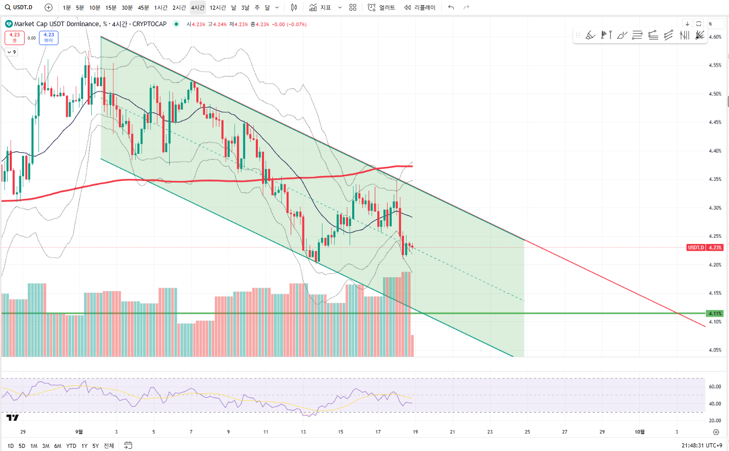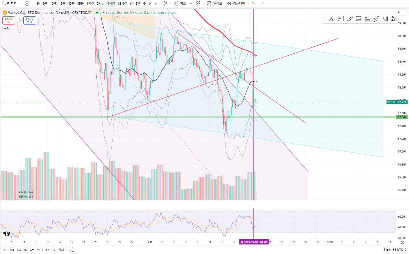 기존 보라색 하방 채널을 이탈 했다가 다시