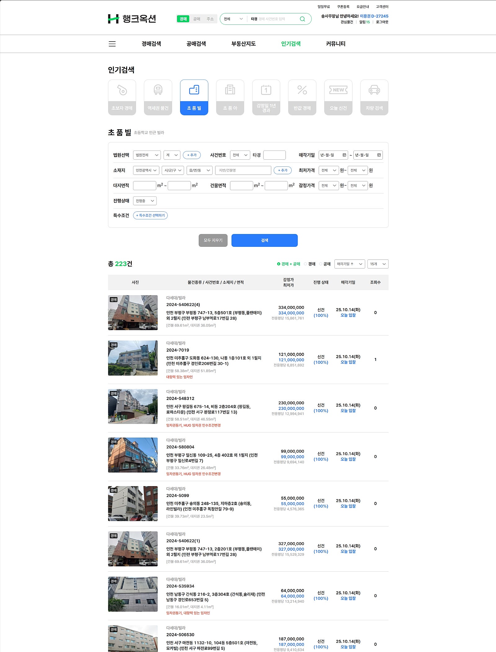 경매 물건검색이 수월하면 입찰할 물건이 많아지는 것은 당연하지요.