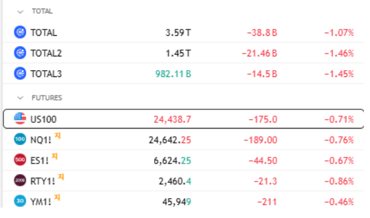 나스닥 선물시장이 -1%에서 와리가리 하는 중에