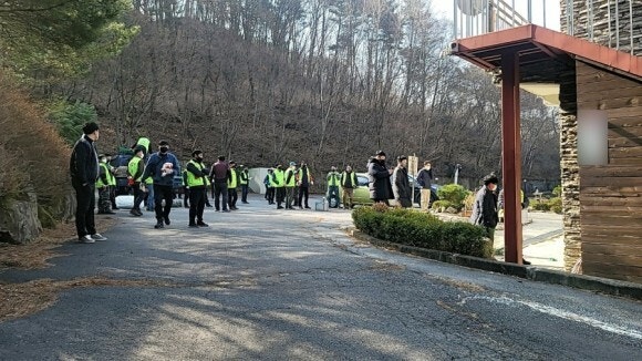 물건 입구에서 대기하다 드디어 집행시간이 되어 펜션 앞으로 이동했습니다.