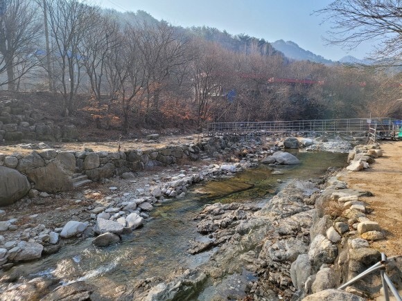새벽에 출발해 여유 있게 펜션 앞 계곡을 둘러봤습니다. 물이 정말 깨끗합니다.