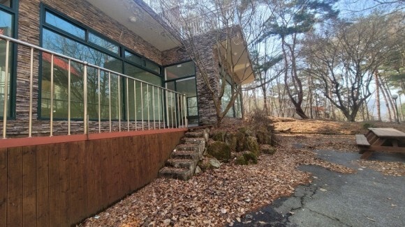 계곡뷰의 2층 테라스에서 어떻게 뷰를 살리며 꾸밀지 생각해보았습니다.
