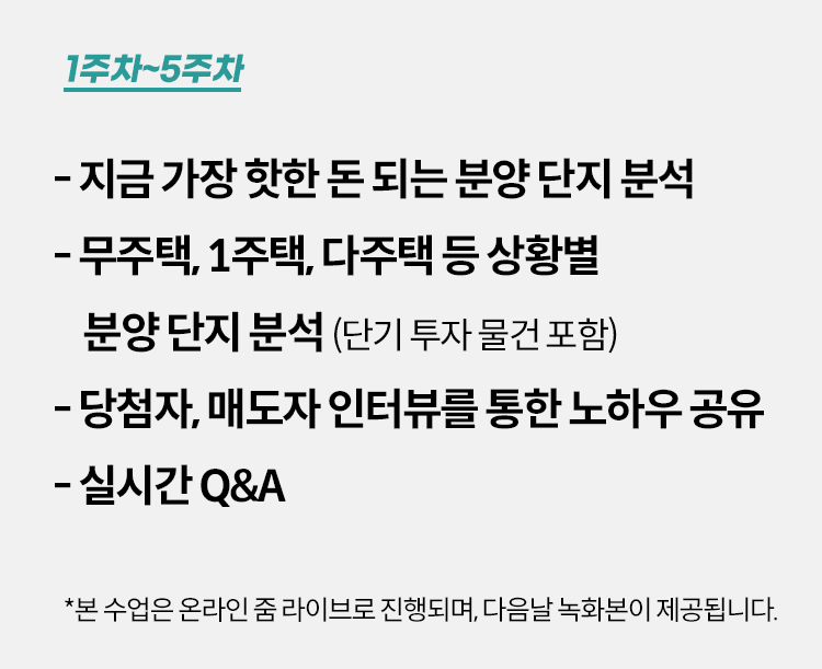 * 강사님과 1:1개별 코칭 과정이 포함되어 있습니다(동행임장 미포함).