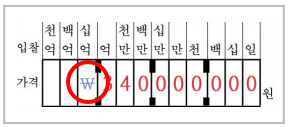 아래 예시와 같이 입찰 금액의 앞 단위에 \를 먼저 써두는 것도 방법이 되겠네요.