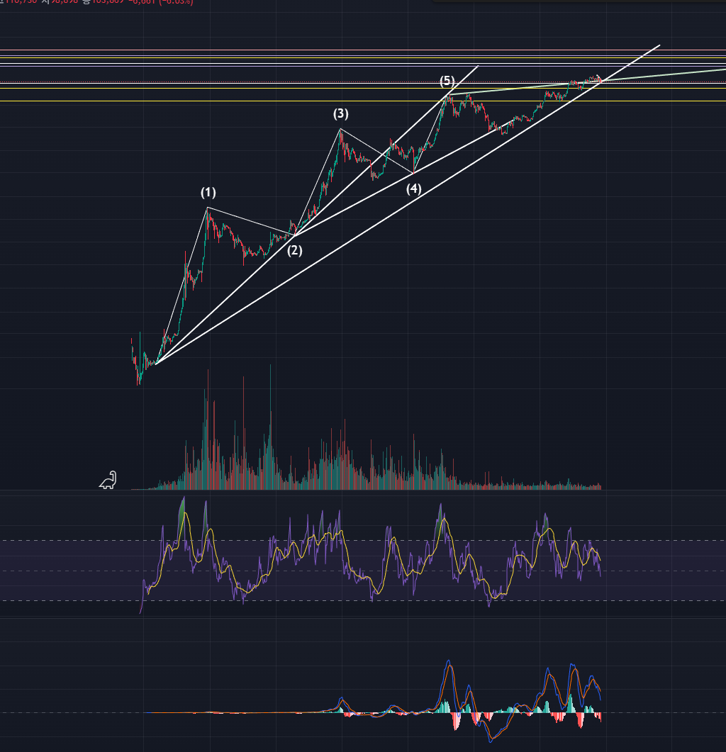 조정 파동은 전부 끝났고 이제 지금까지 비트코인 상승에 맞물려 내가 착각한 추세 파동은 전부 조정파동이고 그 조정이 마무리 단계고