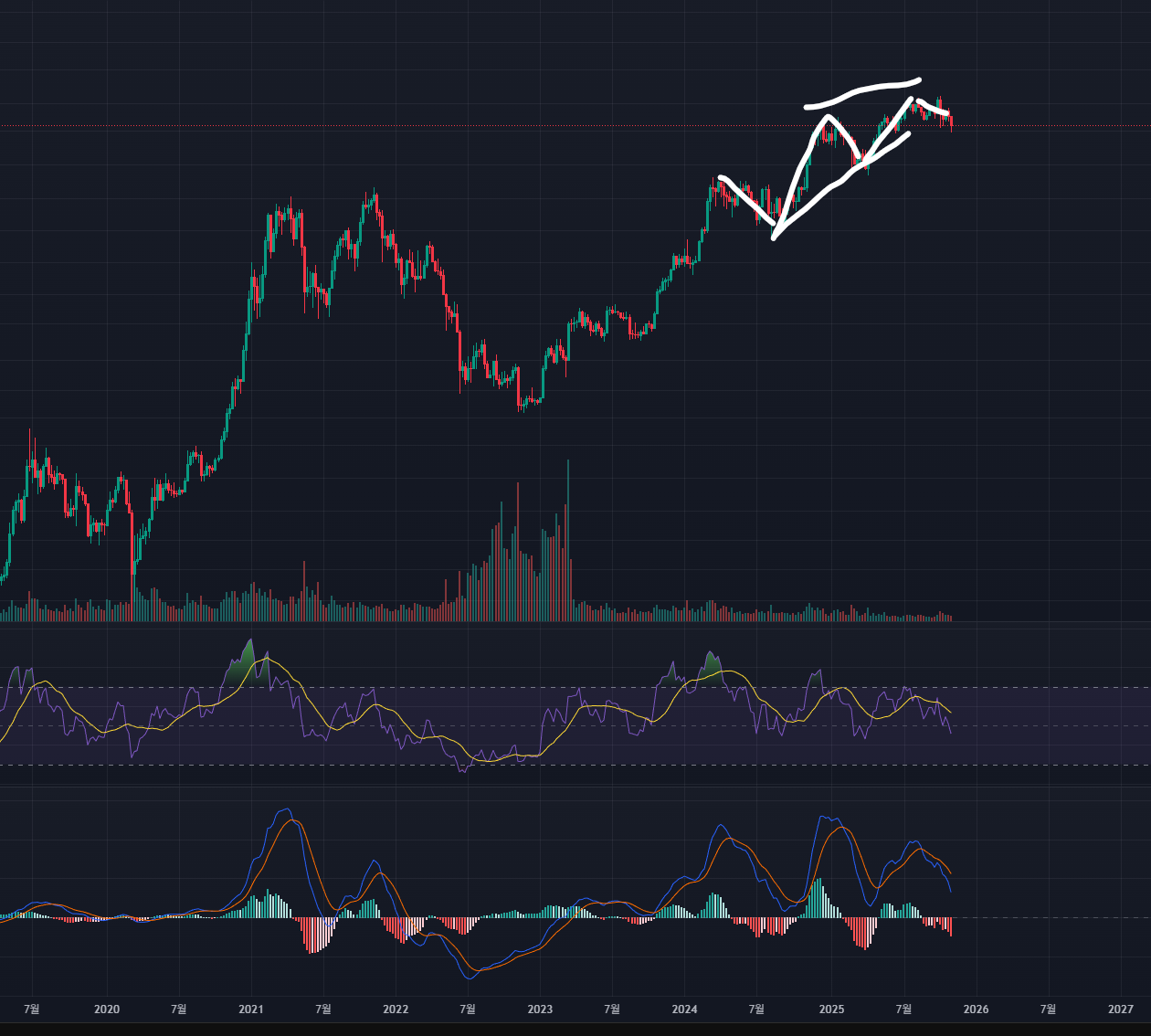 2018년 고점에 거래량이 줄어든 1파 보다 작은 3파 임펄스