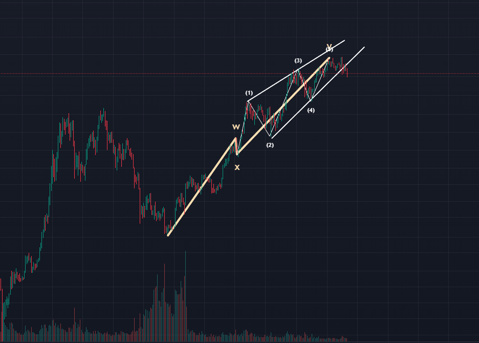 관찰상 x 구간이 상승 3파 내지 지그재그형 반등 형태고
