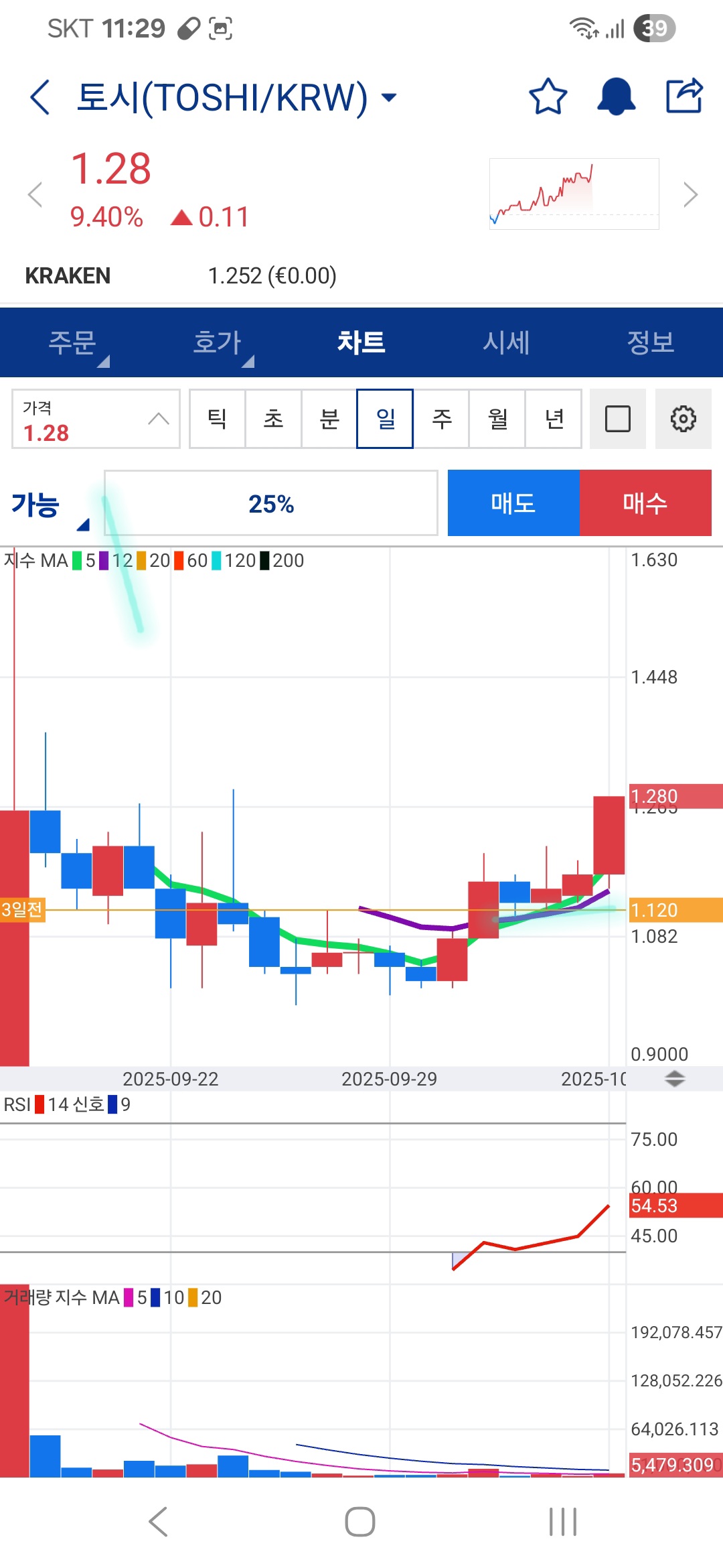 첫날 거래량이 터지고 나서 27%정도를 올립니다.