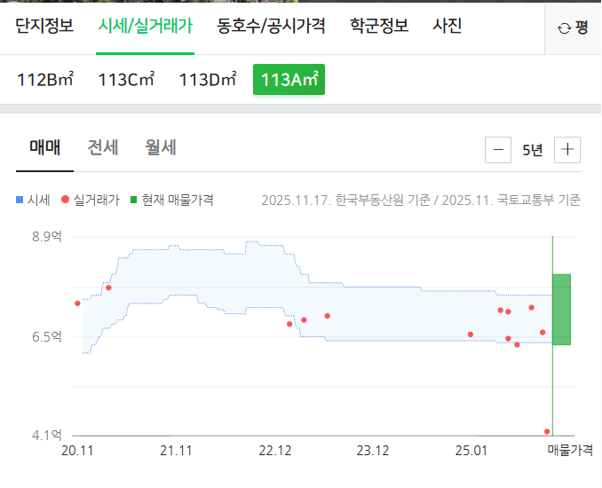 동일 라인/타입의 거래가 현실적인 가격에 형성되어 있는지