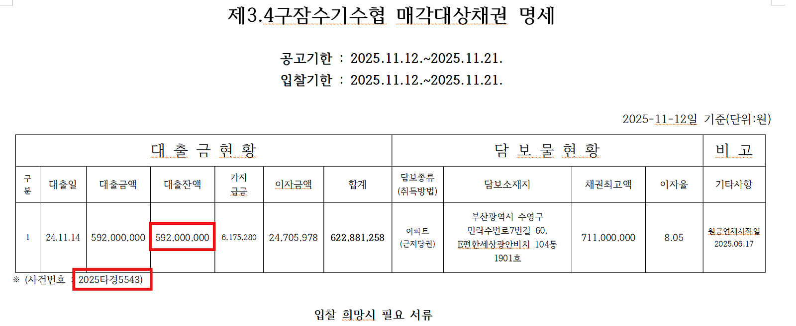 배당요구 종기일 : 2025년 9월 17일