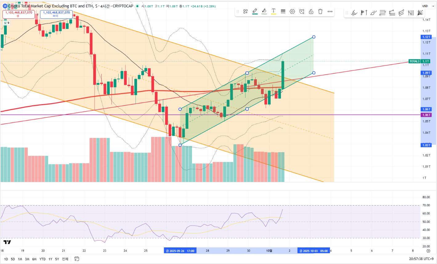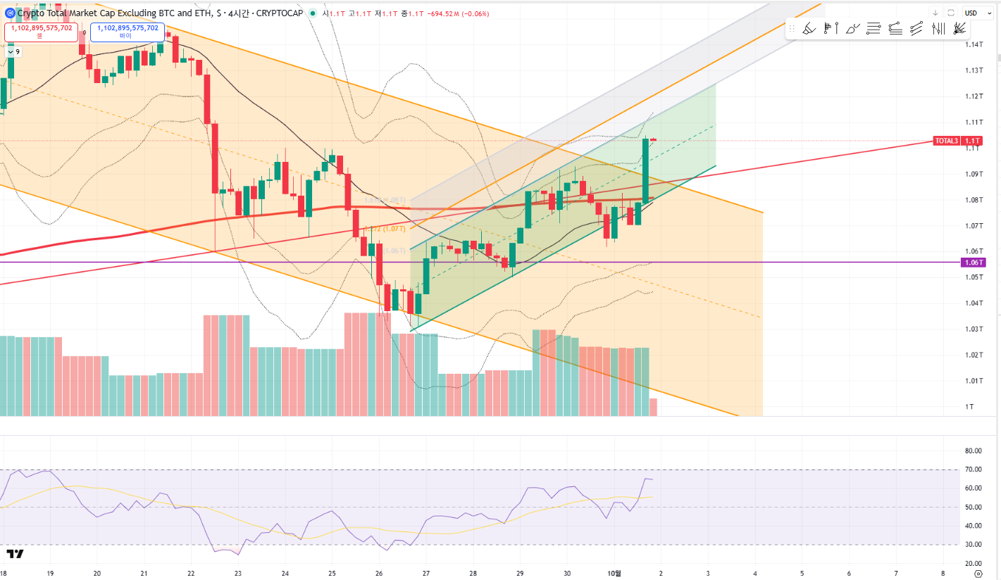 새로운 단기 상승 채널이 그려졌다.