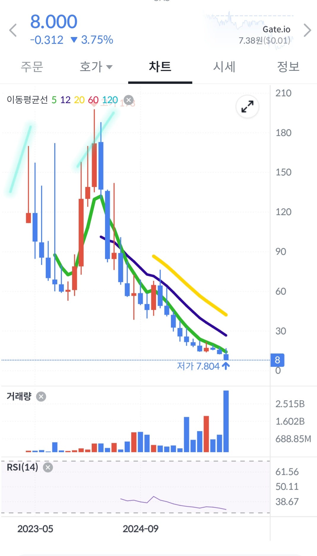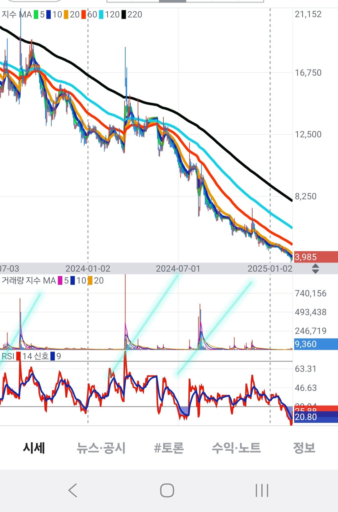 가격 방어를 전혀 못 해주고 신저점을 계속 갱신합니다.