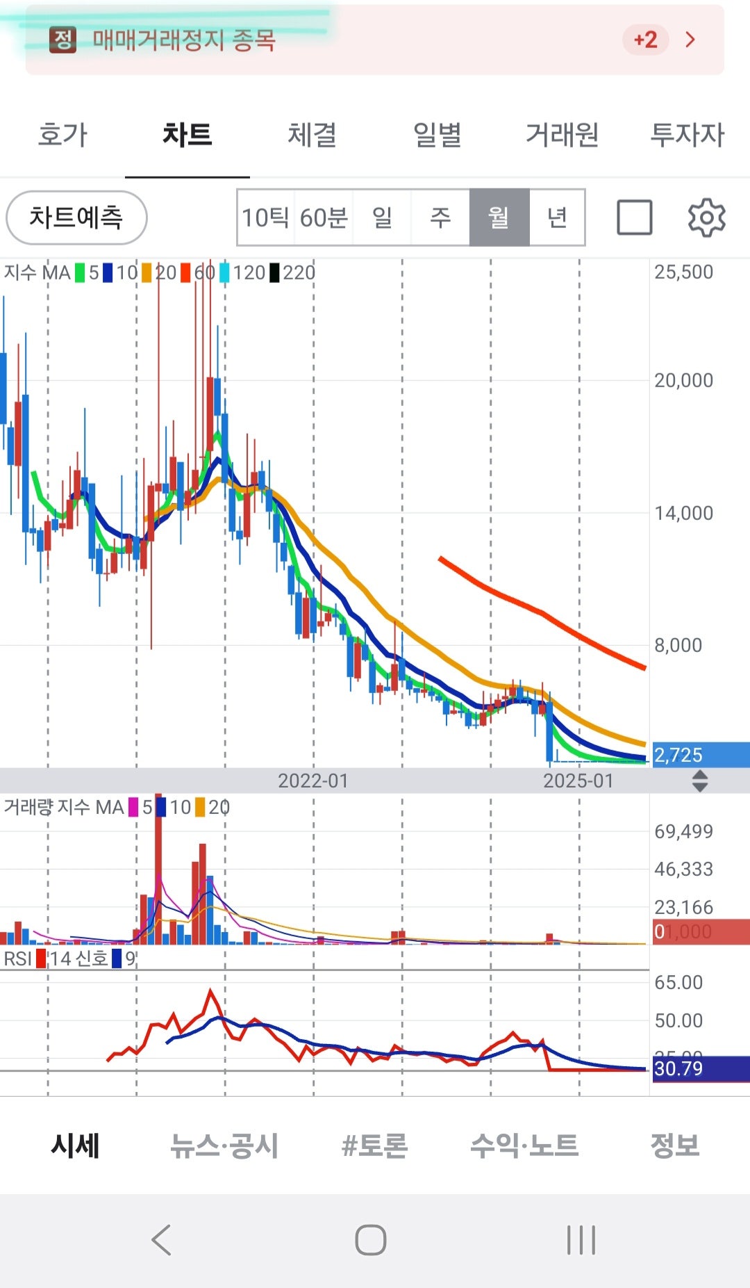 개잡주이니 상폐가 의심되는 상황이고, 물린 주주들은 공포에 떨고 있을 겁니다.