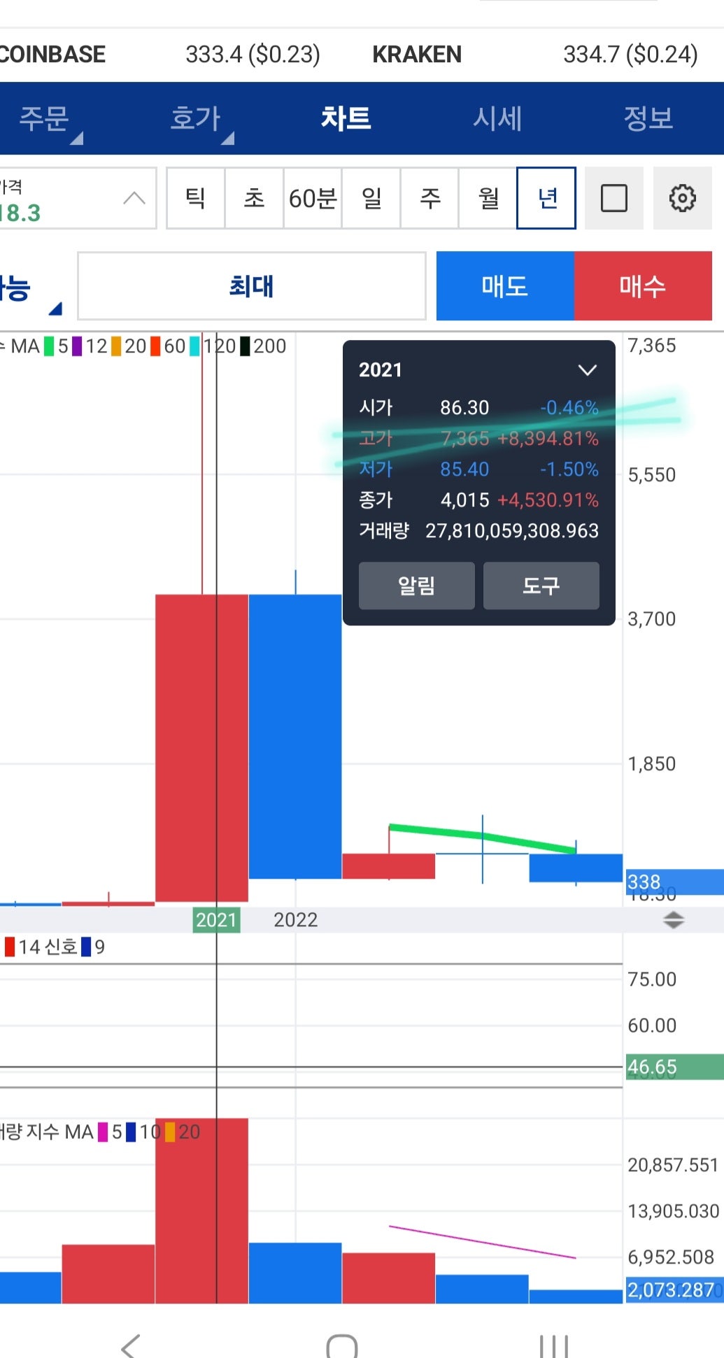 업빗에서는 차트가 짤려서 몰랐는데 해외시세로