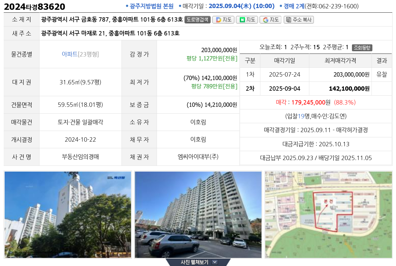19명 입찰해서 시세보다 비싸게 낙찰 받음