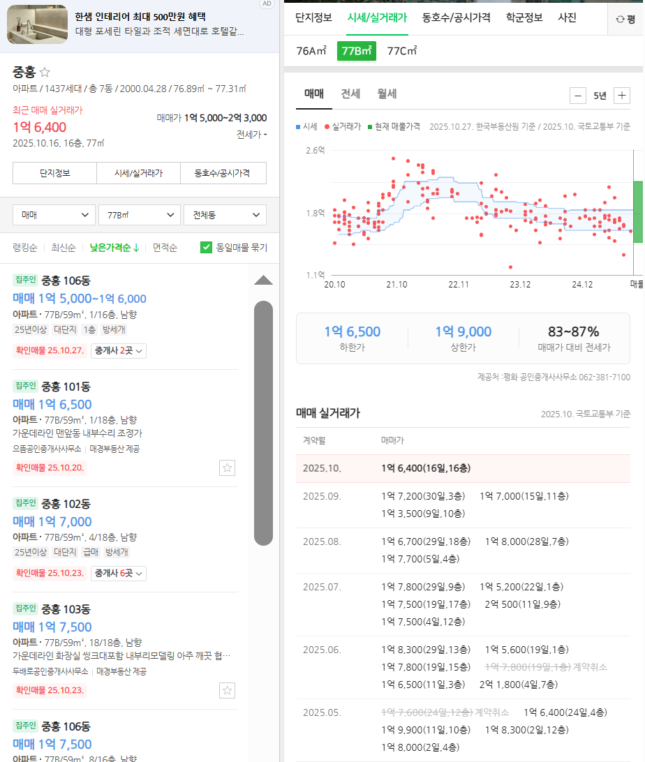 같은 평수의 네이버 호가 및 실거래가를 봐야겠죠?