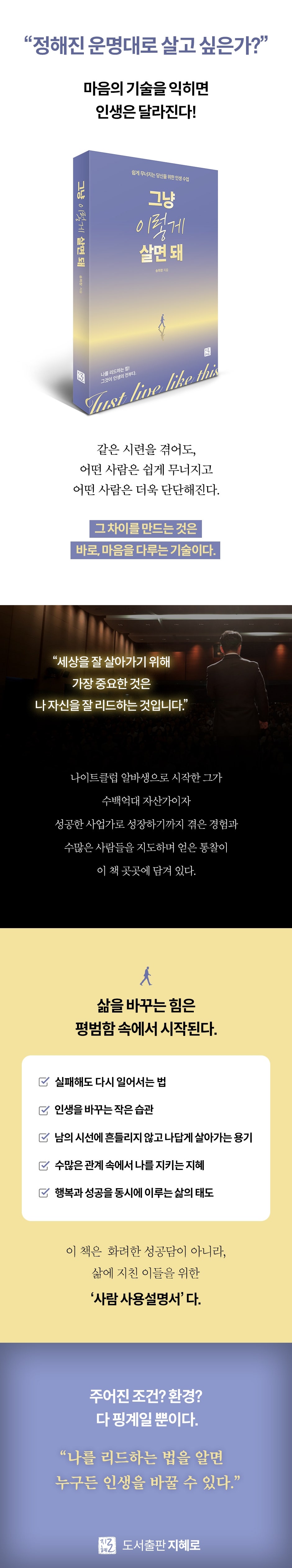 삶의 방향을 스스로 컨트롤하는 방법을 전해드립니다.