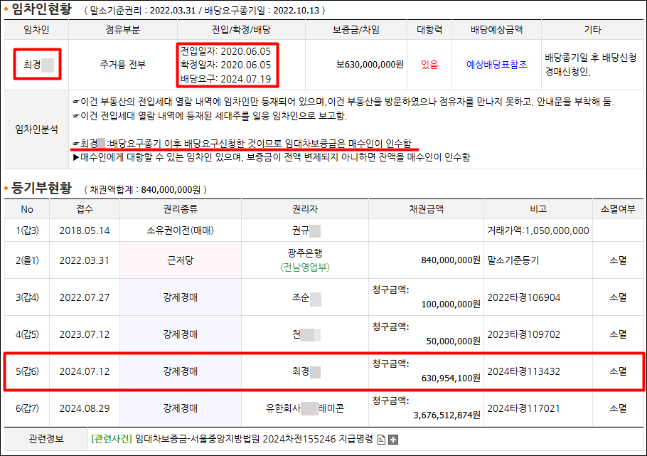 이제 본격적인 권리분석을 위해 등기부등본과 임차인 현황도 살펴보자.