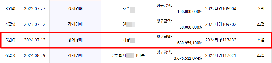 단 한명이 아닌 여러 사람이 한 경매신청 내역