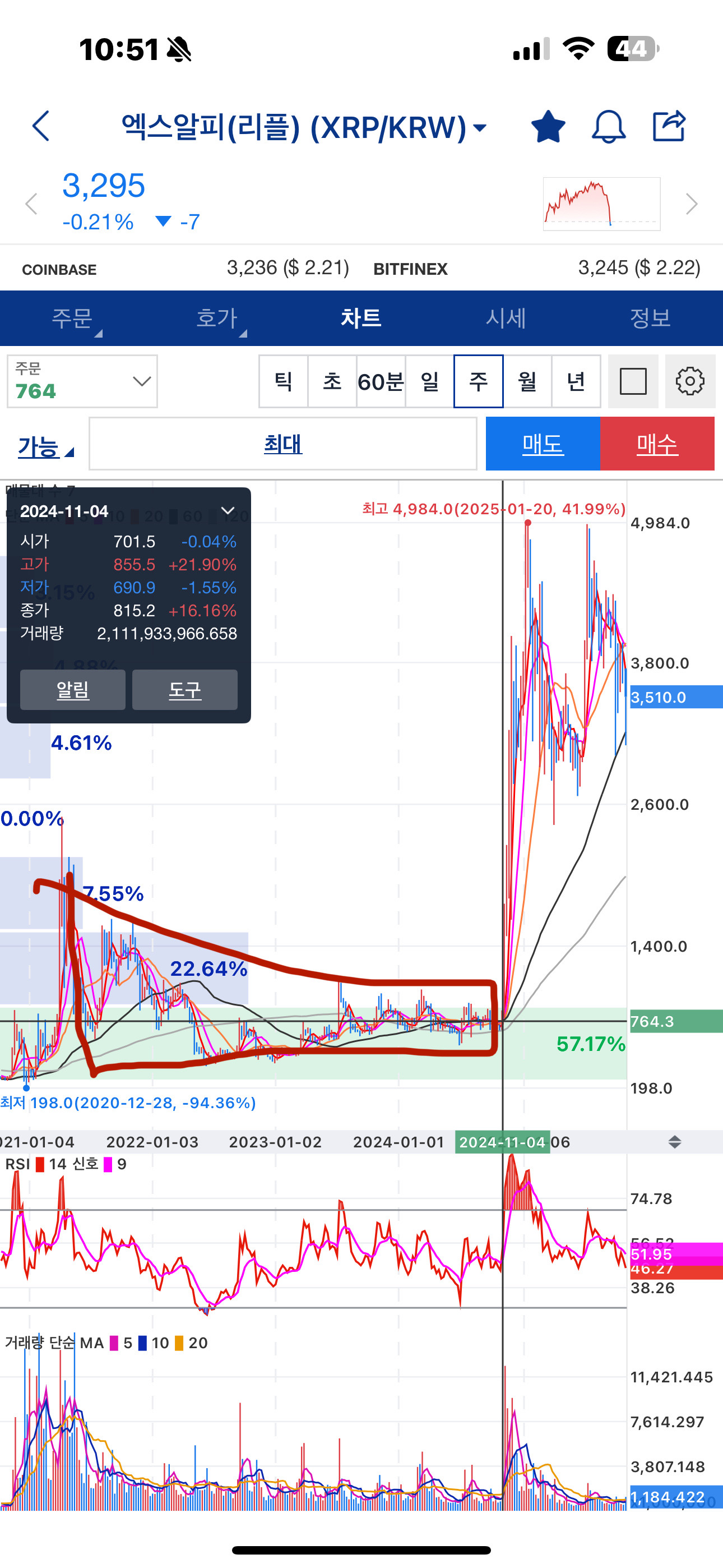 그리고 그 과정을 치료 , 코인은 매집 이겠지..