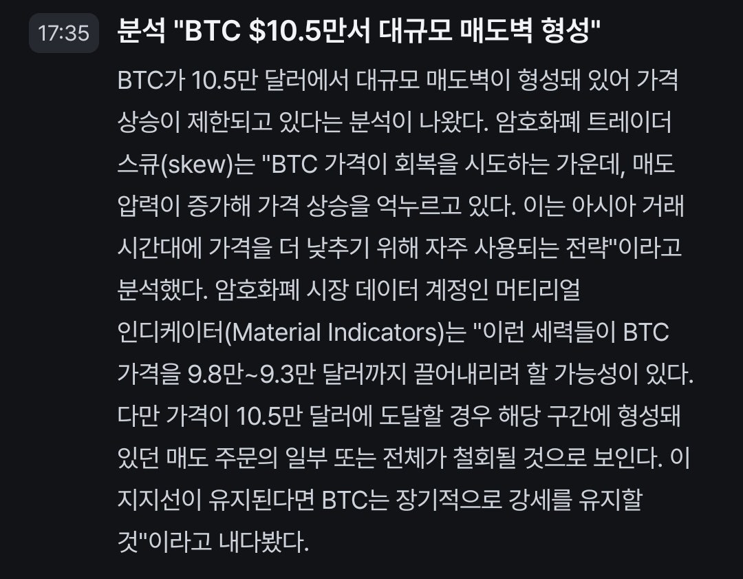 저 세력이 세웠던 105k 위 매도벽 기사가 나왔고