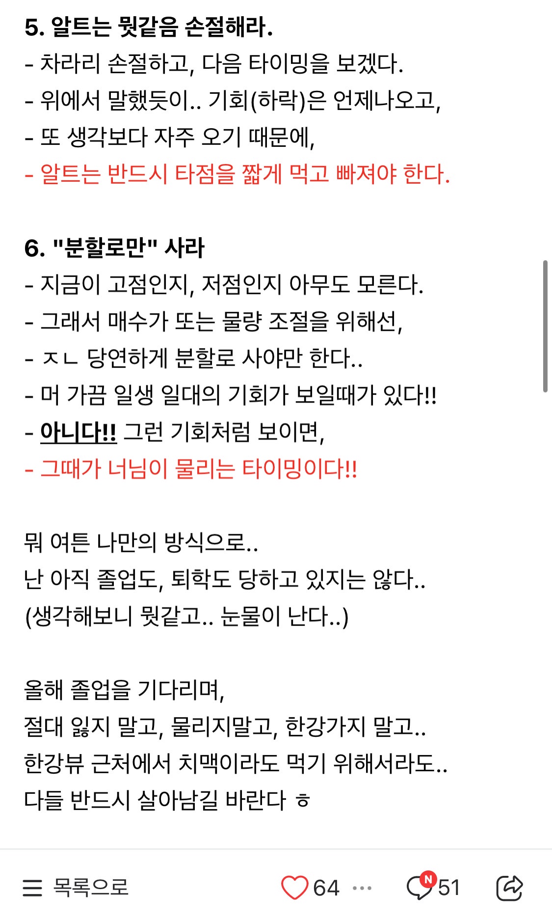 매 순간 샀다 팔았다, 도망갔다 또 오는것도 볍신이다.