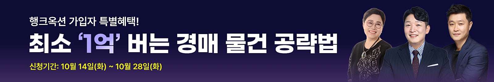 2. 행크옥션 가입자분들께 ‘1억 버는 경매 물건 공략법 특강’을 무료로 제공합니다.