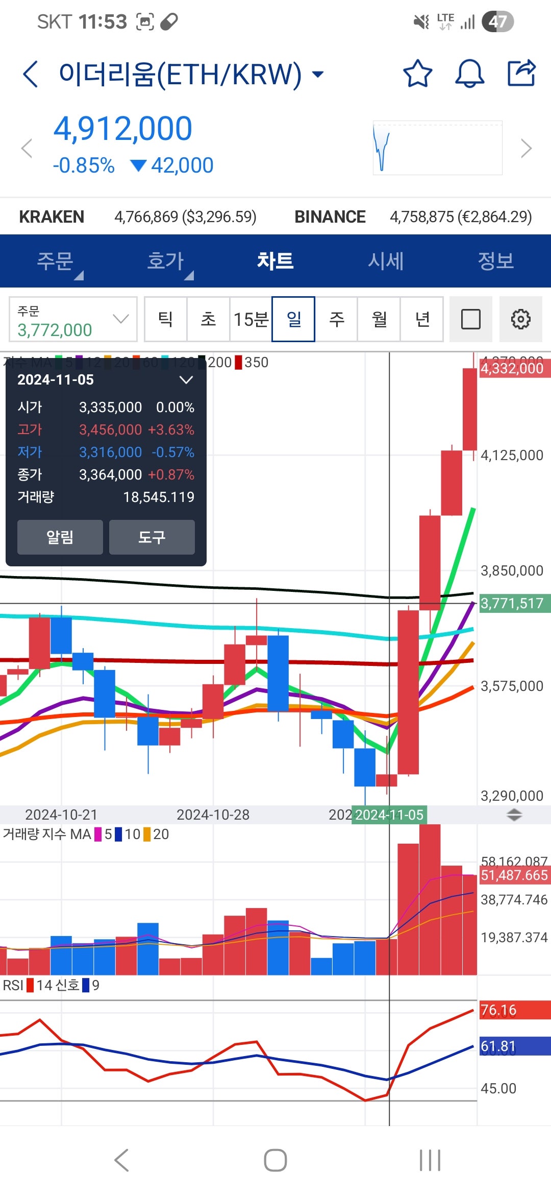 작년 미니 불장 상승 날짜 11월 5일