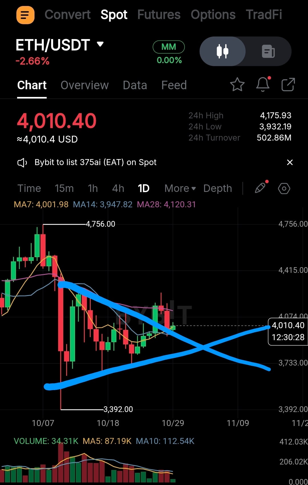 2. 삼각수렴 안으로 들어와 하단 리테스트 후 상승.