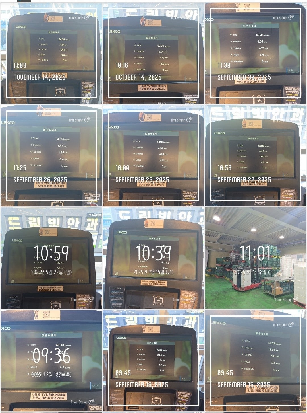 운동 후 타임스탬프로 기록도 꾸준히 하고 있습니다