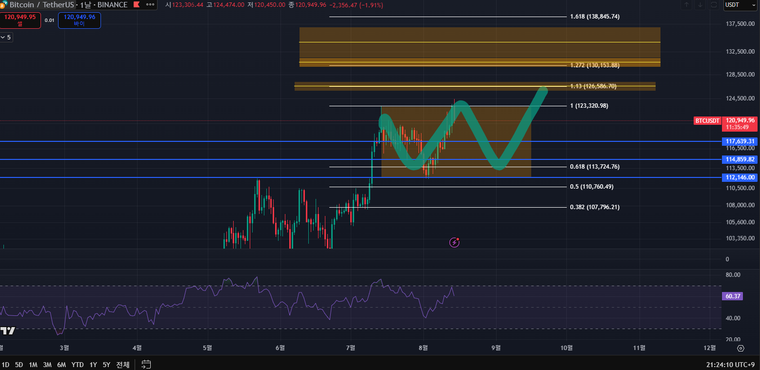 2025.08.14 비트코인 전망 차트 분석 관점 공유 & 그 누구도 예측하기 어려운 장 (관점 수정)