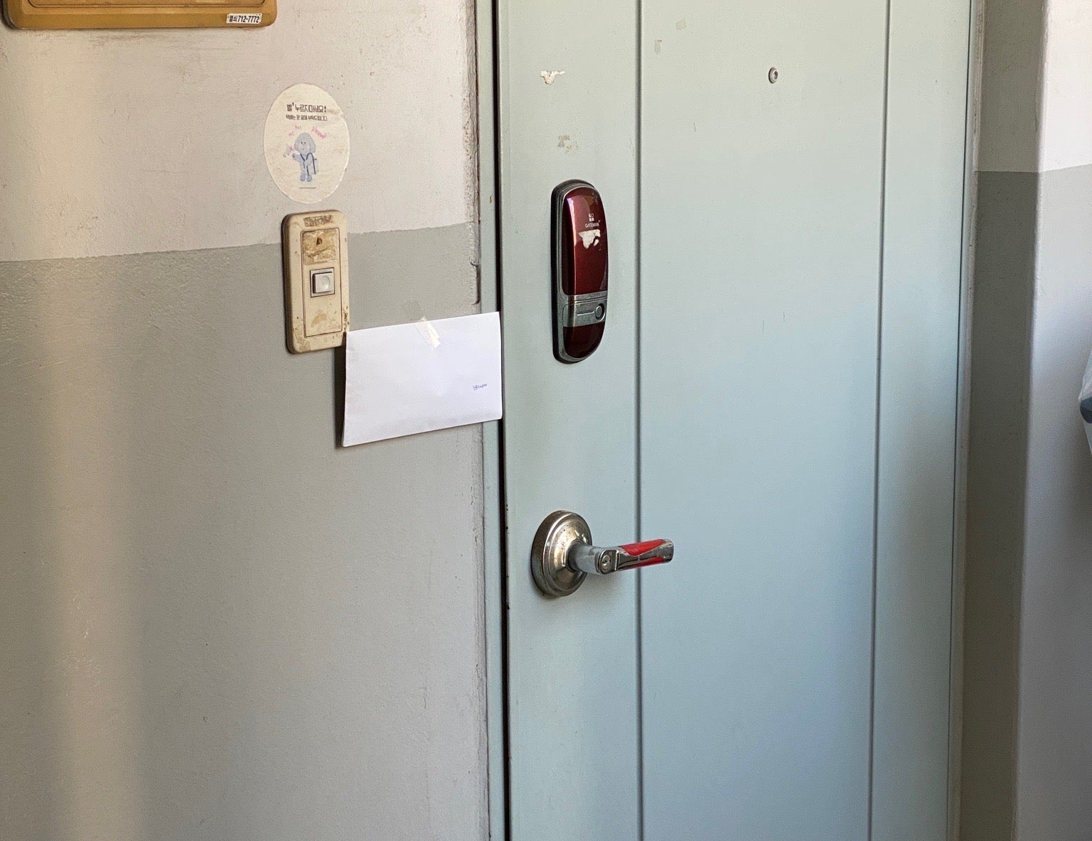택배도 놓여있었고 유모차도 있는 걸로 봐서는 아이가 있는 집인 것 같더라고요.